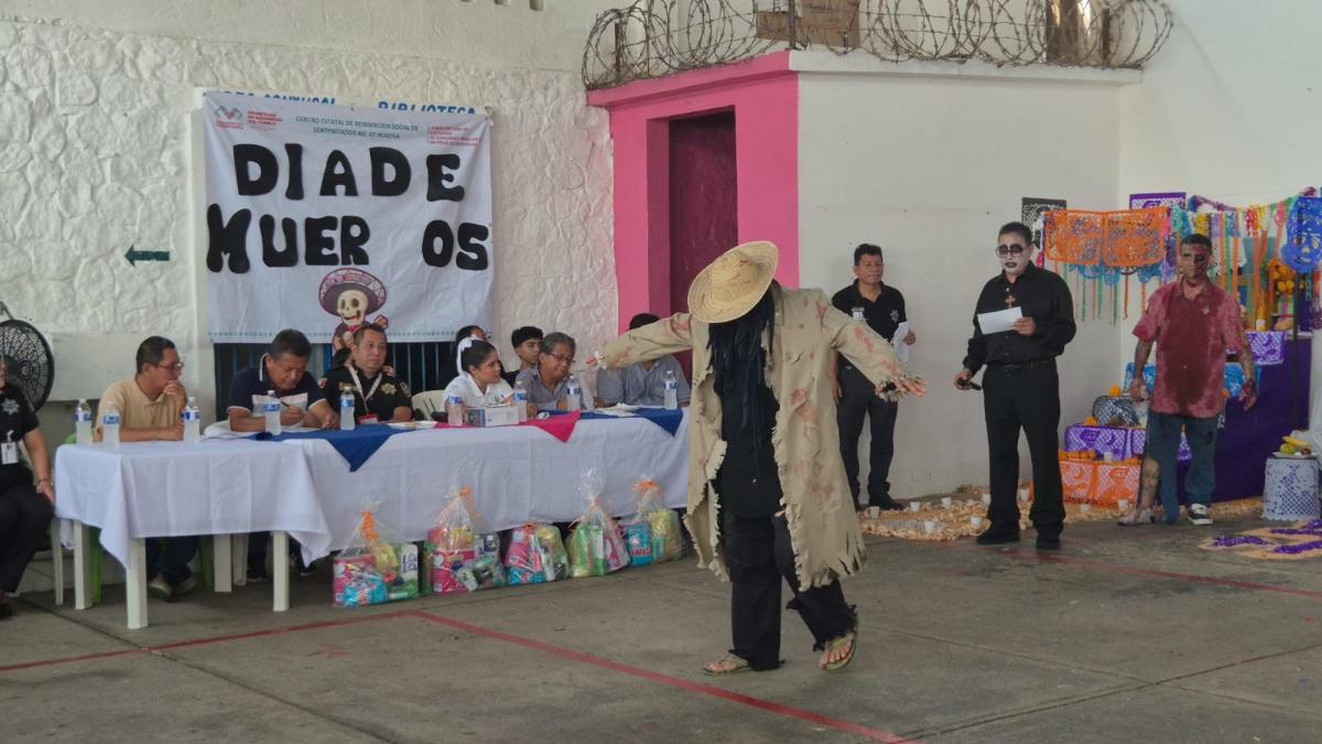 Con la intención de tener actividades lúdicas de quienes no gozan de la libertad, además de mantener las tradiciones, reclusos del Centro Estatal de Reinserción Social para Sentenciados (CERSS) 7 en Huixtla, realizaron concurso de disfraces y altares en conmemoración por el próximo Día de Muertos.