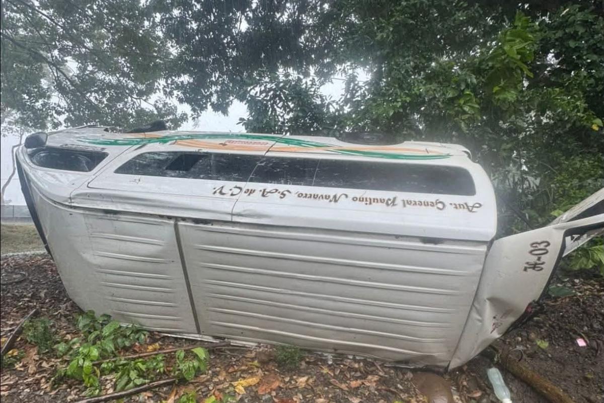 De acuerdo con reportes ciudadanos, el conductor habría perdido el control del volante debido a lo resbaladizo del pavimento y el exceso de velocidad, lo que provocó que el colectivo se saliera de la carretera y quedara semivolcada en la orilla de un terreno, a escasos metros de impactarse contra una vivienda.