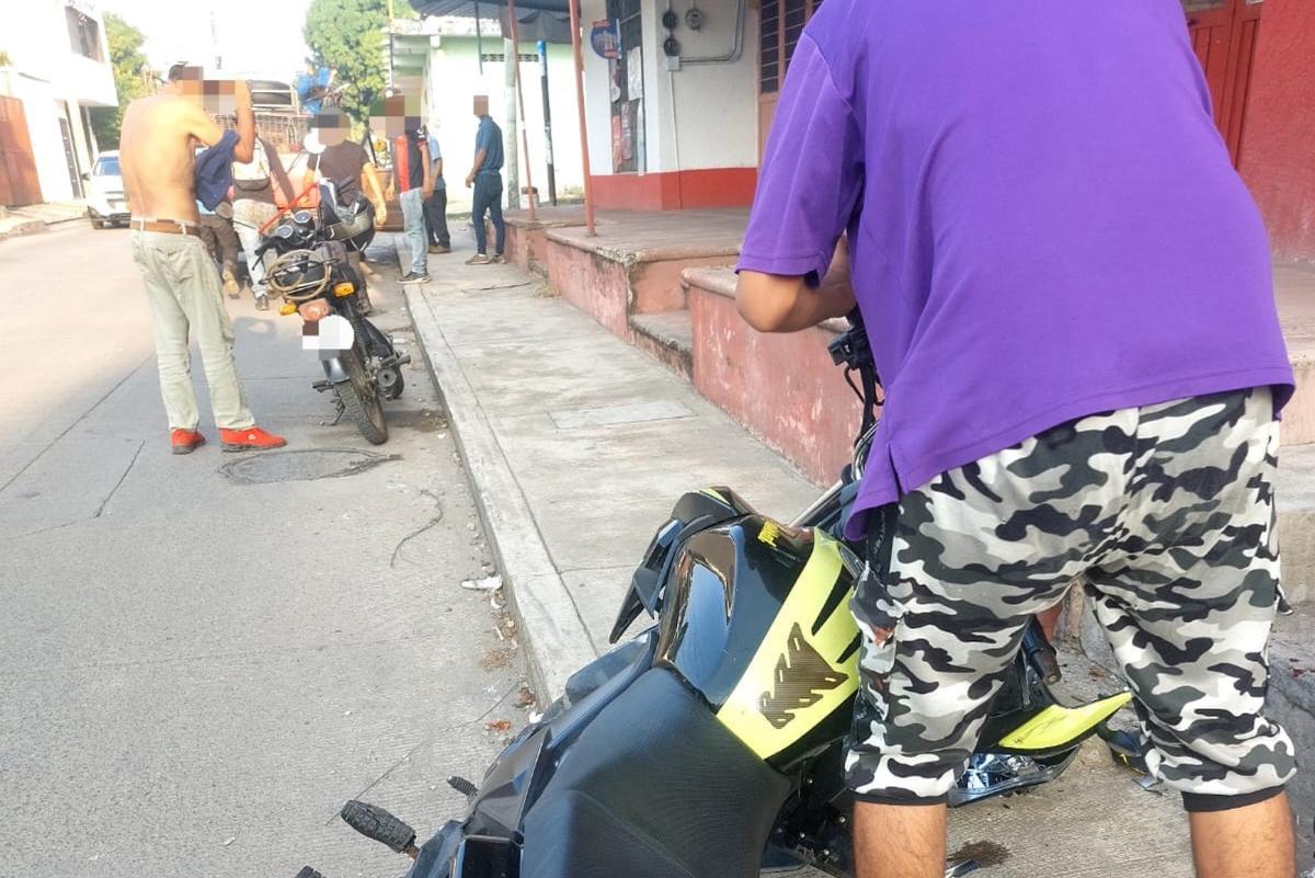 Un motociclista resultó lesionado luego de derrapar y perder el control del manubrio, cuando circulaba sobre la avenida principal de la colonia La Joya, en Tapachula.
