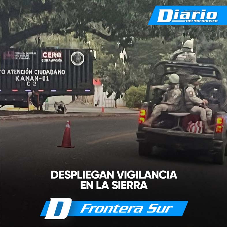Autoridades de los tres órdenes de gobierno implementan operativos de vigilancia y prevención en al menos 30 puntos prioritarios de Motozintla y Frontera Comalapa, como parte de la estrategia “Cero Impunidad”.