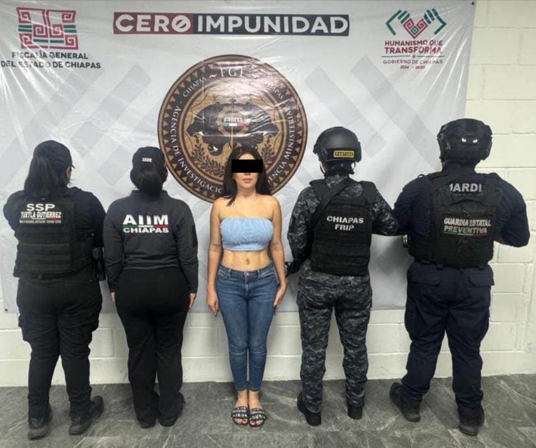 La Fiscalía General del Estado, a través de la Fiscalía de Distrito Metropolitano, y la Secretaría de Seguridad del Pueblo ejecutaron una orden de aprehensión en contra de Tatiana “N”, como presunta responsable del delito de amenazas, cometida en agravio de una persona del sexo femenino de identidad reservada, por hechos ocurridos el 13 de julio de 2025 en Tuxtla Gutiérrez.