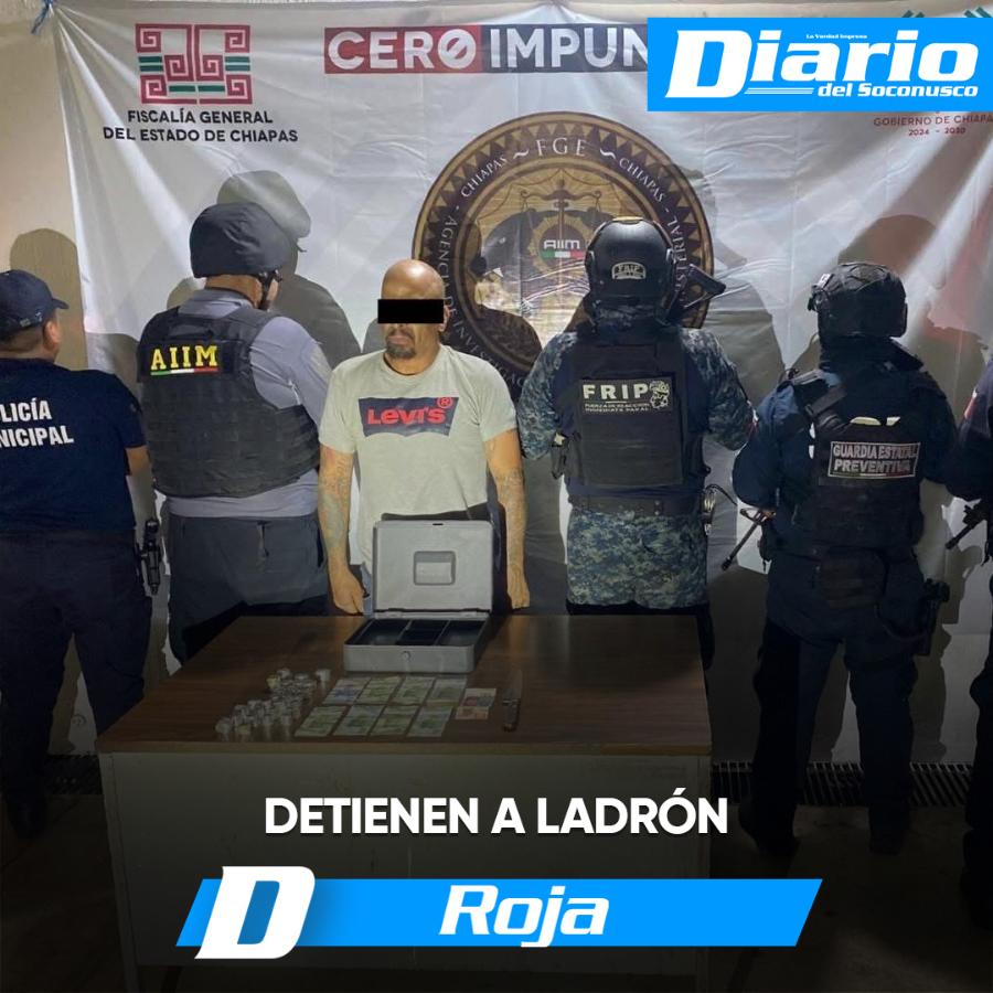 Elementos de la Fuerza de Reacción Inmediata Pakal (FRIP), Guardia Estatal Preventiva y Guardia Estatal Fronteriza, detuvieron en flagrancia a un sujeto por el delito de robo con violencia en el municipio de Tapachula.