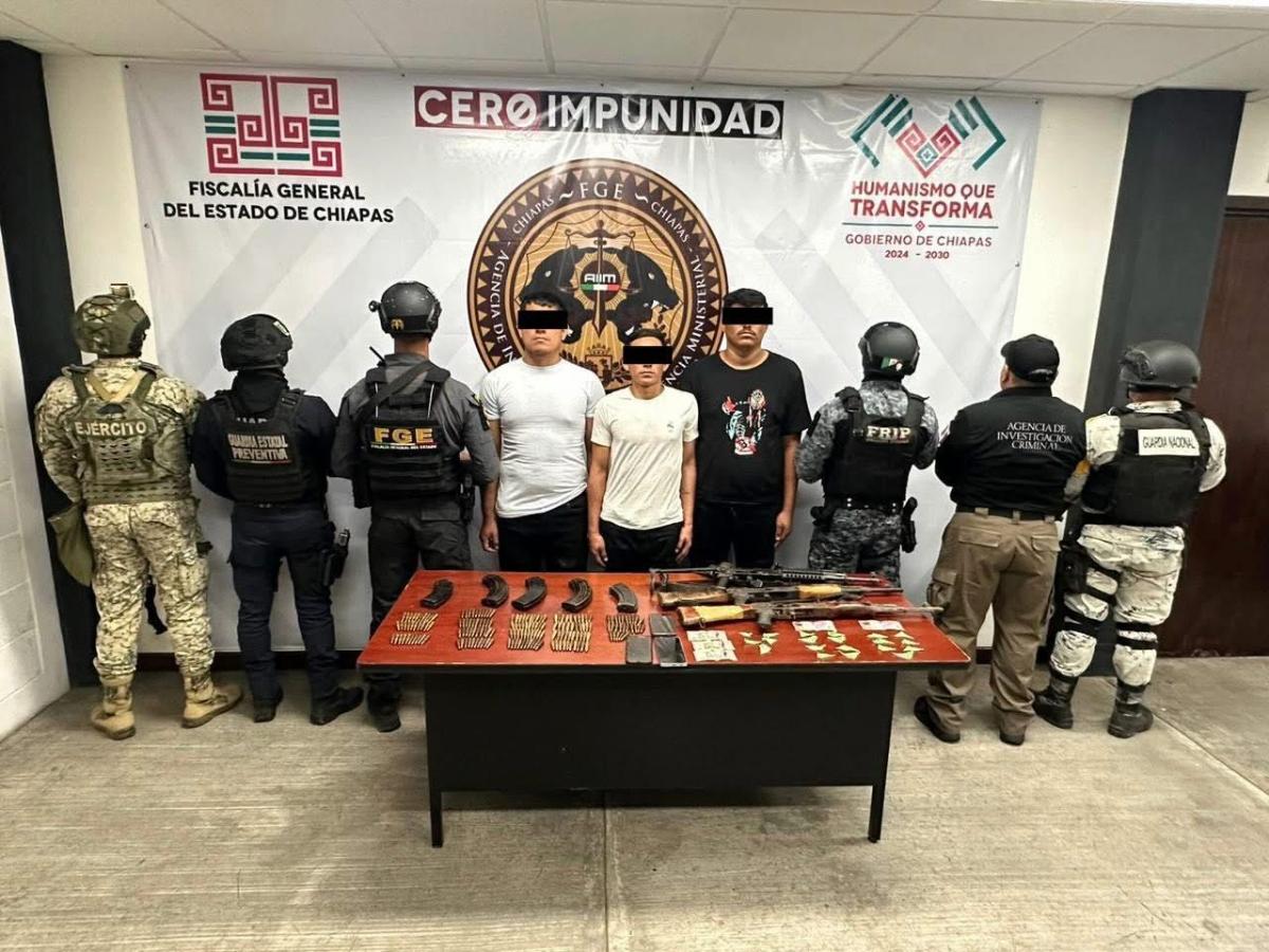Derivado del “Operativo Arriaga Seguro”, la Secretaría de Seguridad del Pueblo (SSP), a través de la Fuerza de Reacción Inmediata Pakal (FRIP), la Guardia Estatal Preventiva, en coordinación con la Fiscalía General del Estado (FGE), la Agencia de Investigación Criminal (AIC) de la Fiscalía General de la República (FGR), la Guardia Nacional y el Ejército Mexicano, lograron la detención de tres sujetos como presuntos responsables del delito contra la salud y portación de arma de fuego en el municipio de Arriaga.