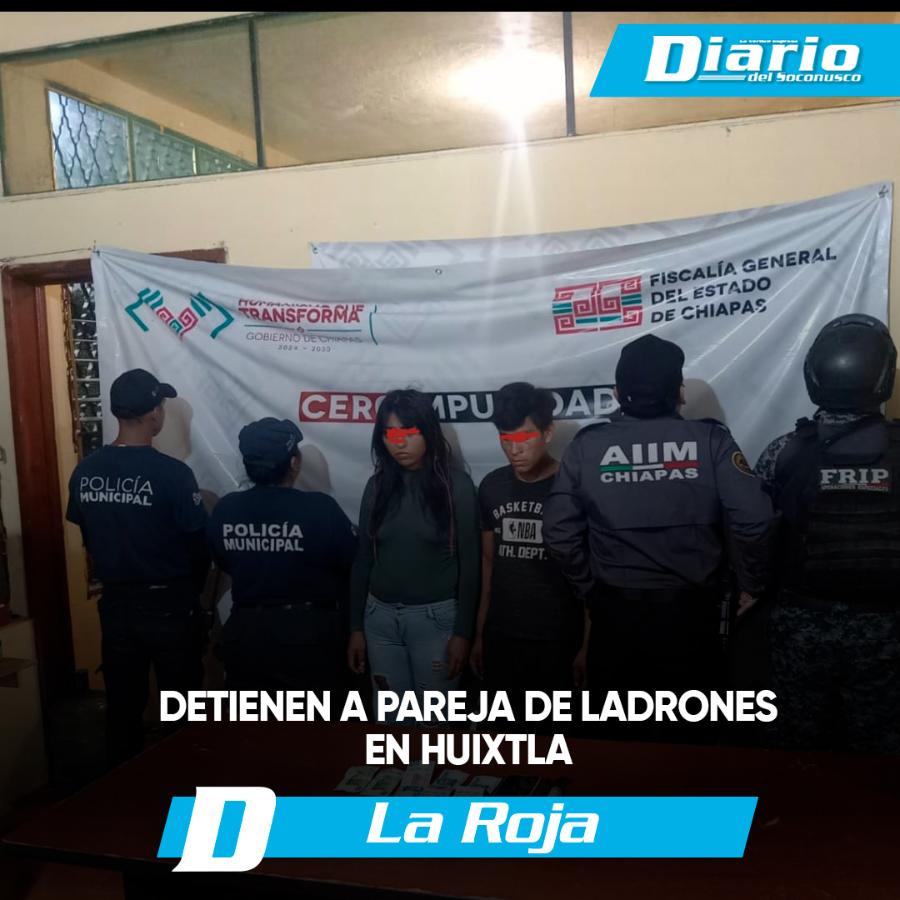Laura Yessenia “N”, alias “La Chola”, y Miguel Ángel “N”, conocido como “El Wuanaco”, originario de El Salvador, fueron detenidos por fuerzas de seguridad durante recorridos de vigilancia y prevención del delito en Huixtla.