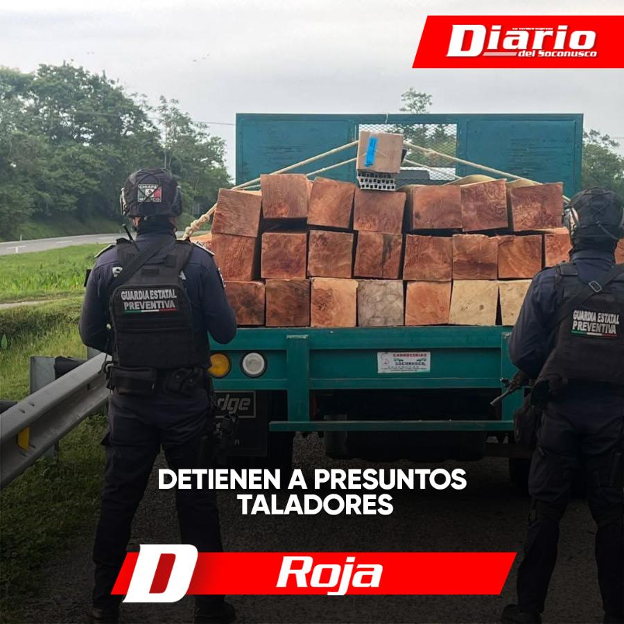 Dos perdonas del sexo masculino que transportaban varios tablones de madera, presuntamente sin permisos, fueron detenidos por elementos de diversas corporaciones policíacas de seguridad y ahora están a disposición de las autoridades de la Fiscalía General del Estado (FGE).