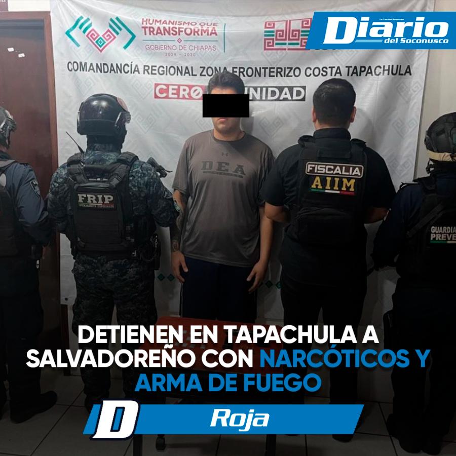 A través de un operativo encabezado por elementos de la Fuerza de Reacción Inmediata Pakal (FRIP), fue detenido en Tapachula un hombre en posesión de presuntos narcóticos y un arma de fuego.