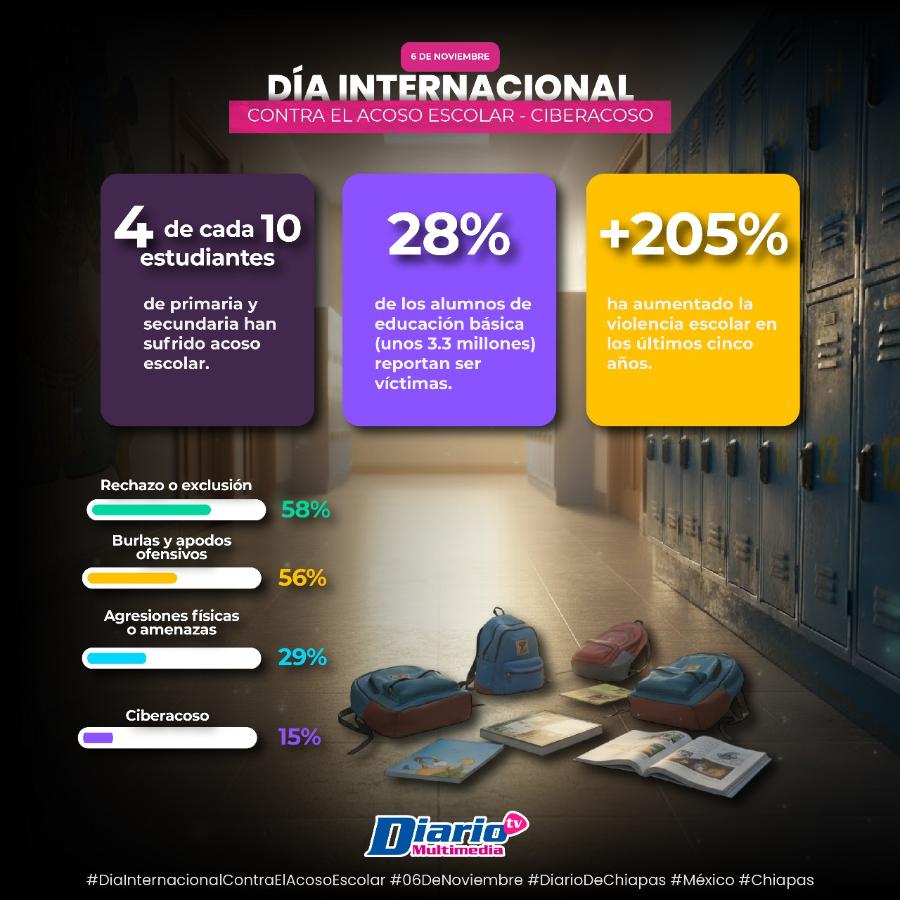 👉 El 28% de los alumnos de educación básica (unos 3.3 millones) reportan sufrir algún tipo de violencia.
