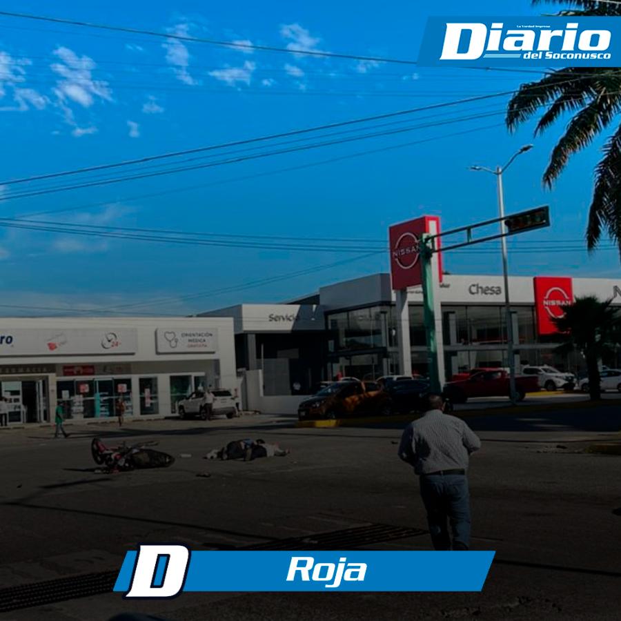 La mañana de este jueves se registró un accidente vial en la 4ª Avenida Sur Prolongación, a la altura del semáforo del Internado Número 11, que dejó como saldo a una pareja de motociclistas lesionados.