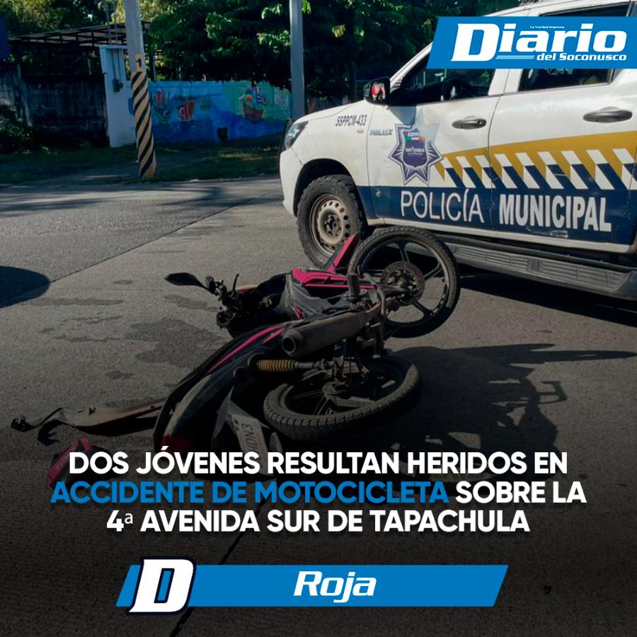 La mañana de este jueves se registró un accidente vial en la 4ª Avenida Sur Prolongación, a la altura del semáforo del Internado Número 11, que dejó como saldo a una pareja de motociclistas lesionados.