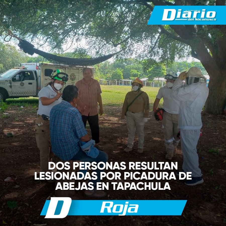 Elementos de Protección Civil Municipal acudieron a un reporte de ataque de abejas al sur oriente de Tapachula, donde dos personas resultaron afectadas tras recibir múltiples picaduras.