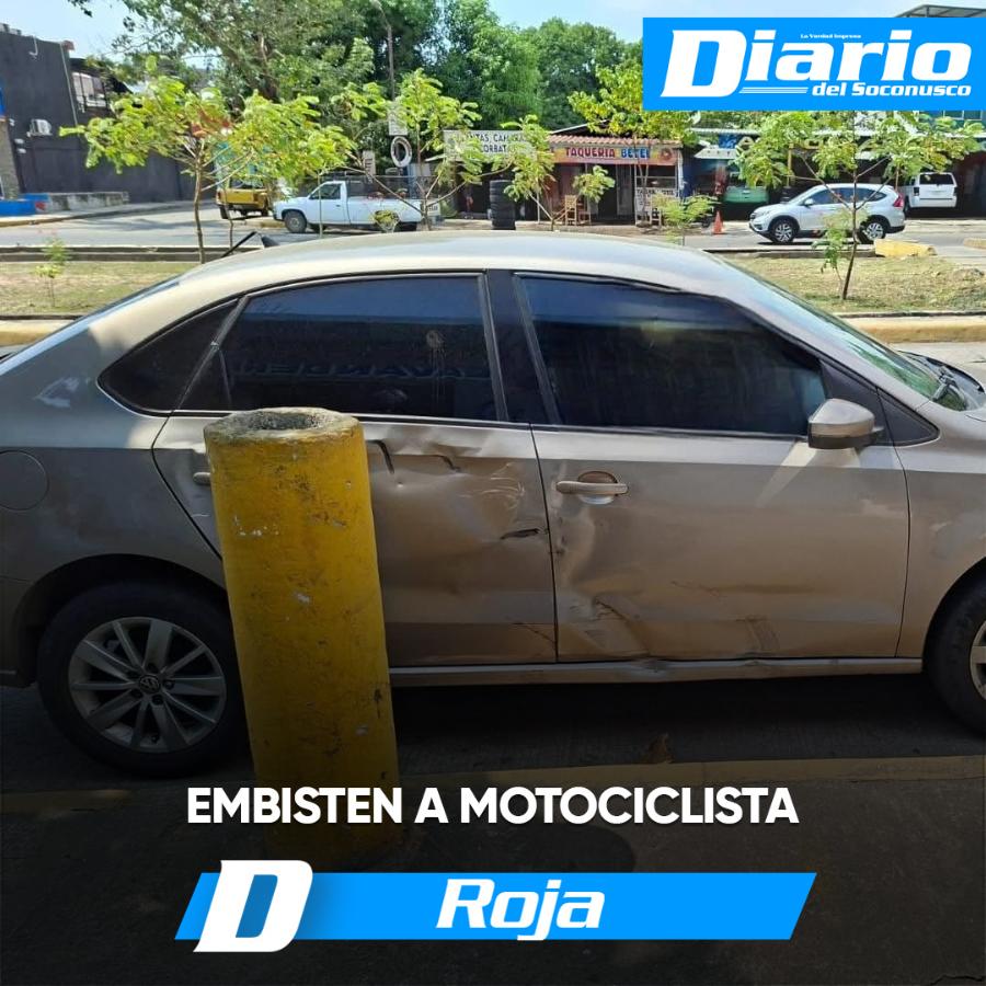 Un motociclista resultó lesionado luego de ser embestido por un automóvil la tarde de este miércoles, en el Par Vial de la 7ª Avenida Sur y Calle Lirios, en la colonia Emiliano Zapata.