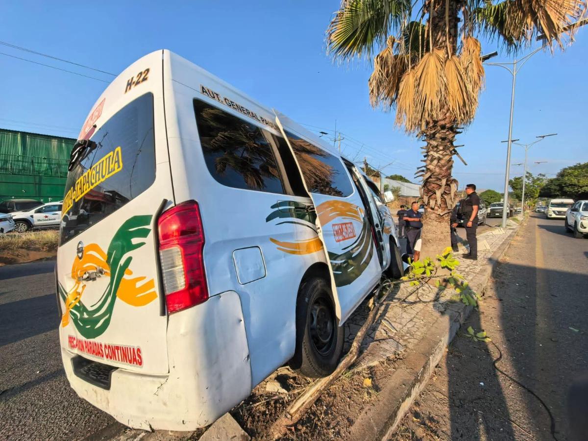 De acuerdo con los primeros informes, el conductor de la camioneta Nissan NP300 realizó un corte de circulación, lo que provocó que la colectiva se impactara contra una palmera a un costado de la vía.