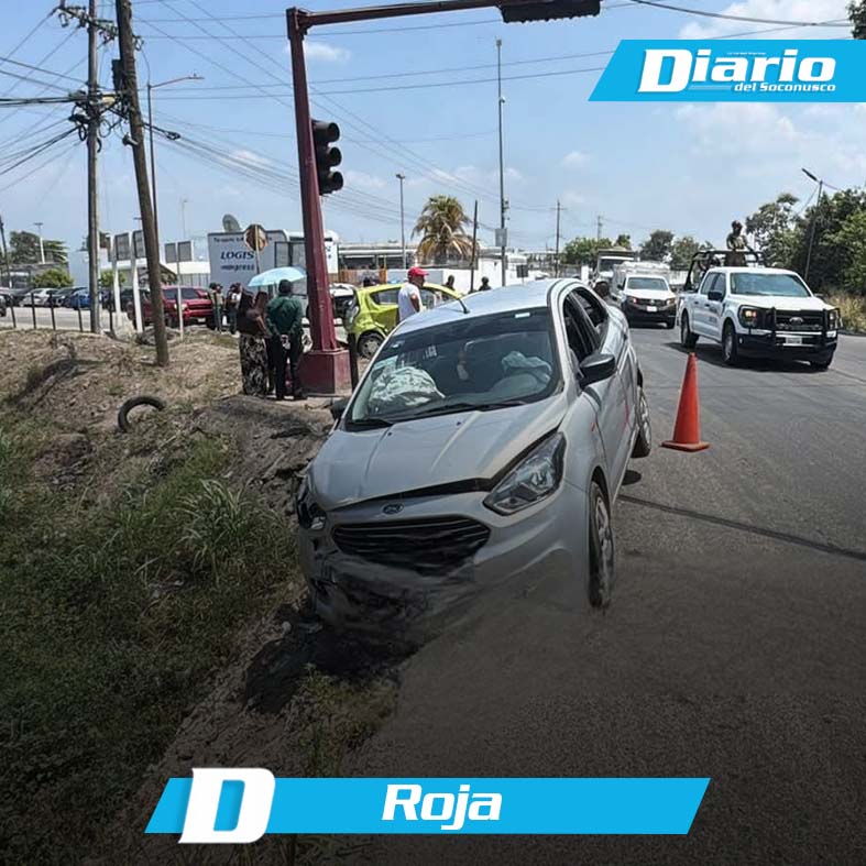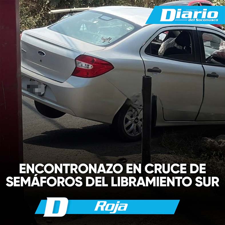Un accidente automovilístico registrado en el cruce de semáforos del Libramiento Sur y el camino al cantón Murillo dejó como saldo únicamente daños materiales, sin que se reportaran personas lesionadas.