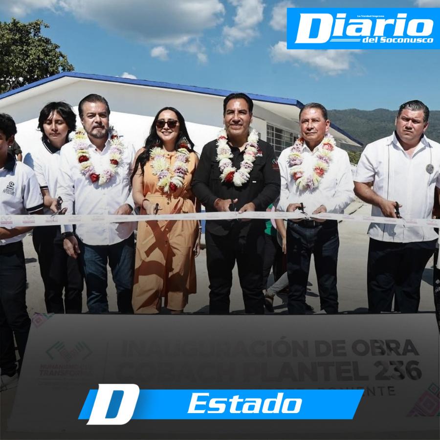 El gobernador Eduardo Ramírez Aguilar inauguró aulas didácticas y obras exteriores en el Colegio de Bachilleres de Chiapas (Cobach) Plantel 236, en Tuxtla Gutiérrez, con una inversión superior a 2.2 millones de pesos. En este acto, reiteró el compromiso del Gobierno de la Nueva ERA de fortalecer la infraestructura educativa, con el fin de garantizar espacios escolares dignos y de calidad.