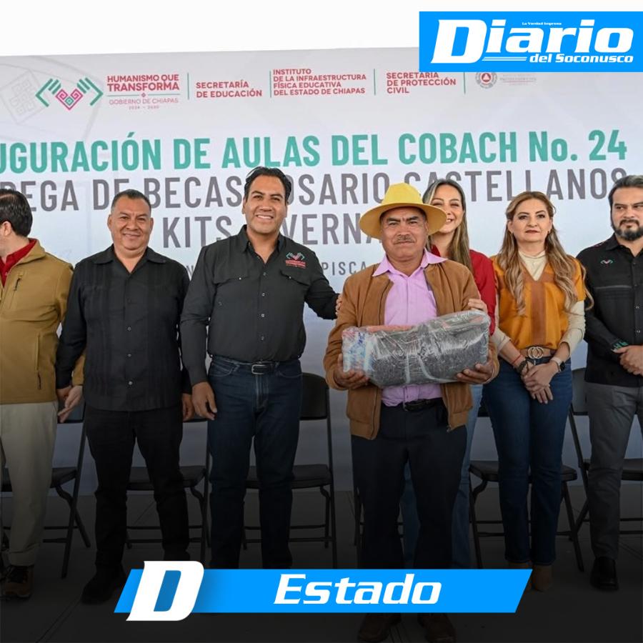 En otro momento, durante una visita al municipio de Teopisca, el gobernador inauguró espacios educativos en el Colegio de Bachilleres de Chiapas (Cobach), Plantel 24, además de entregar becas de alfabetización Rosario Castellanos y kits invernales en beneficio de familias en situación de vulnerabilidad. Señaló que estas acciones forman parte de un gobierno humanista que atiende de manera prioritaria las necesidades de la población y reafirmó su compromiso de gobernar con humildad, honestidad, autoridad moral y en unidad con el pueblo.