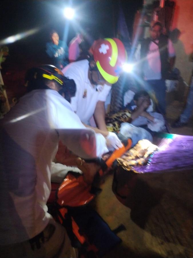 Al llegar al tramo citado, se trasladaron al rancho “Las Perlas” donde hablaron con una femenina, quien dijo ser la mamá del accidentado de 22 años de edad, presentaba una herida cortante en el pecho de aproximadamente 20 cm y una más a la altura del tobillo de la extremidad izquierda, por lo que lo trasladaron al hospital para que recibiera atención médica.