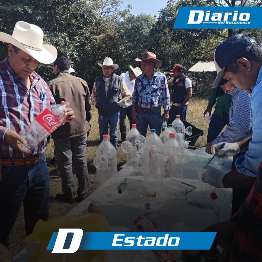 Durante la capacitación que se desarrolló en el municipio de Cintalapa, los productores aprendieron a elaborar trampas artesanales con botellas de plástico, un compuesto orgánico que sirve como atrayente para estos insectos y una lámina atrapamoscas para realizar un muestreo de todas las variedades, a efecto de descartar la presencia de la mosca del gusano barrenador.