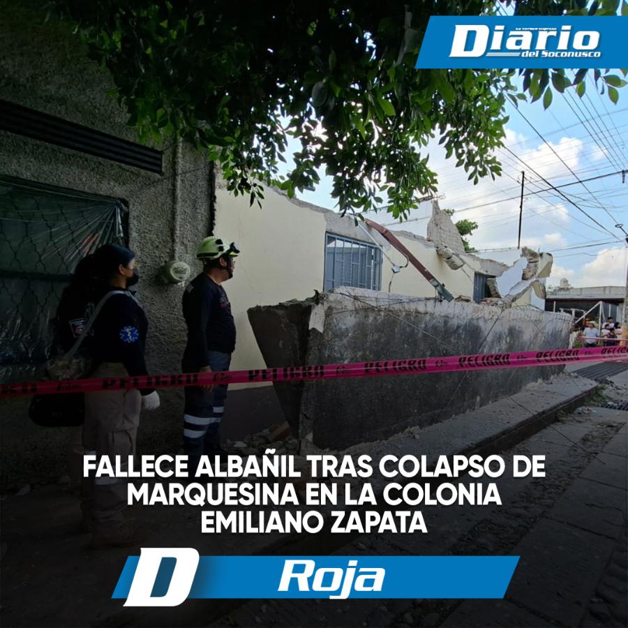 Un trabajador de la construcción perdió la vida de manera trágica la tarde de este lunes, luego de que una marquesina colapsara sobre él mientras realizaba labores de demolición en una vivienda ubicada en la colonia Emiliano Zapata, al sur oriente de Tapachula.
