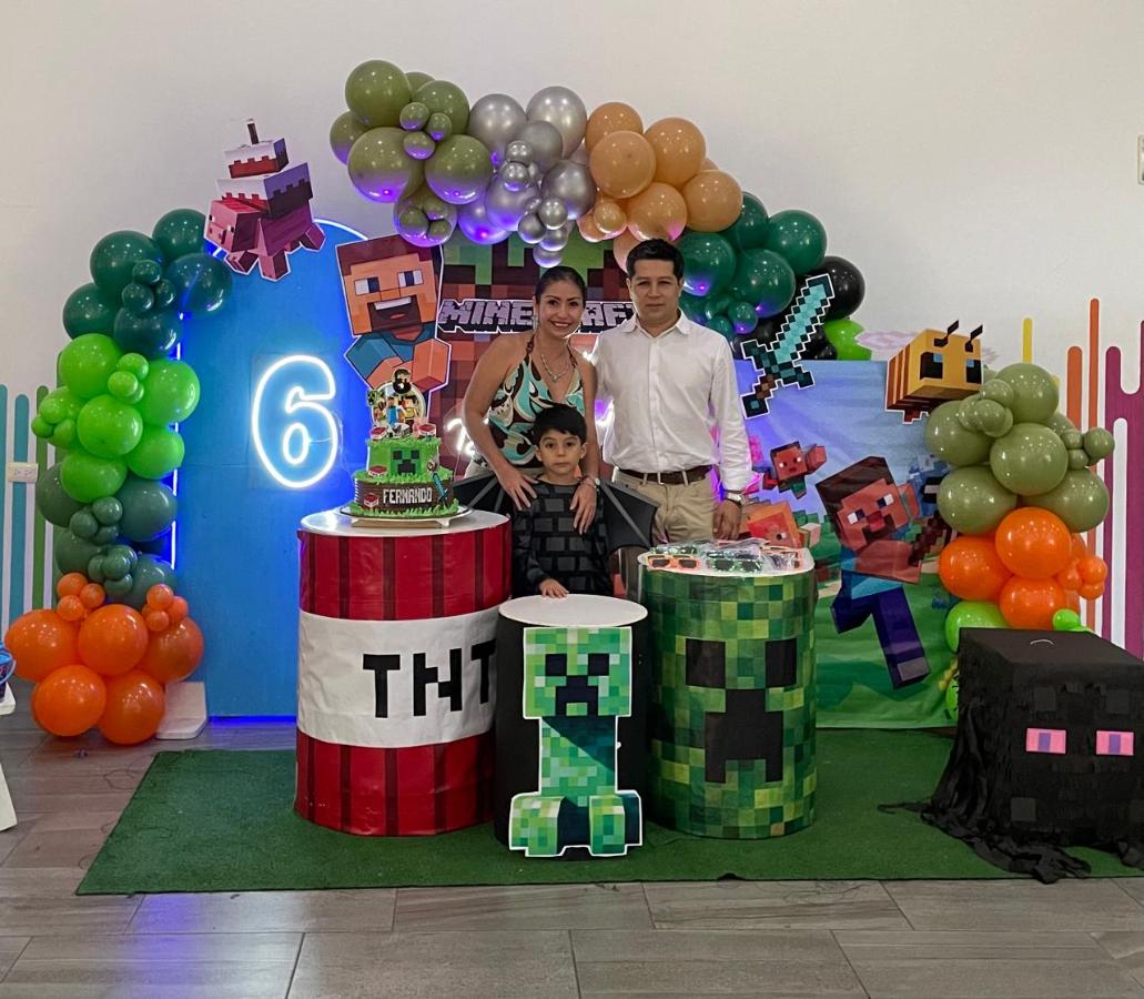 Sus padres, Tania y Gerardo, organizaron una divertida fiesta inspirada en Minecraft, el videojuego favorito del festejado, donde los pequeños invitados disfrutaron de actividades recreativas, juegos y deliciosos platillos.