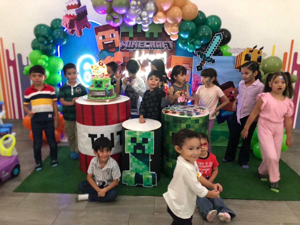 Sus padres, Tania y Gerardo, organizaron una divertida fiesta inspirada en Minecraft, el videojuego favorito del festejado, donde los pequeños invitados disfrutaron de actividades recreativas, juegos y deliciosos platillos.