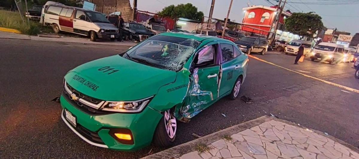 Un fuerte accidente entre un taxi y una combi de pasajeros se suscitó la mañana de este domingo, en el retorno del bulevar sobre la carretera Costera, a la altura del Conalep en Huixtla, dejando como saldo cuantiosos daños materiales.