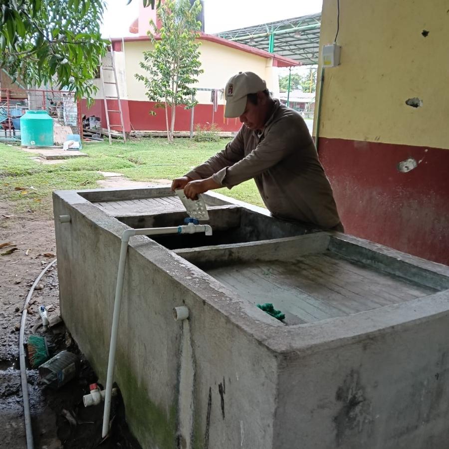 La Secretaría de Salud del Estado, a través de la Jurisdicción Sanitaria No. VII, efectuó la fumigación en la Escuela Telesecundaria «Sor Juana Inés de la Cruz», de la comunidad Benito Juárez, municipio de Suchiate, luego de haber sido habilitada como refugio temporal ante las fuertes lluvias que se han registrado en los últimos días.