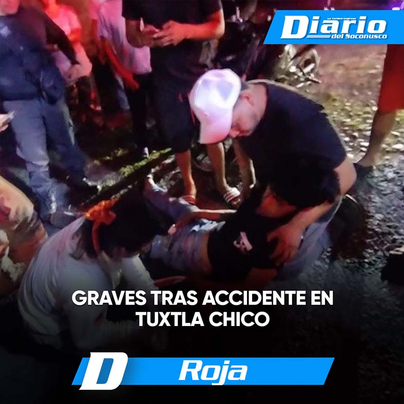 Dos jovenes resultaron lesionados la noche de este jueves, luego de que derraparan en la motocicleta en que viajaban, a la altura del kilómetro 13, sobre la entrada al camino El Pataste, en Tuxtla Chico.
