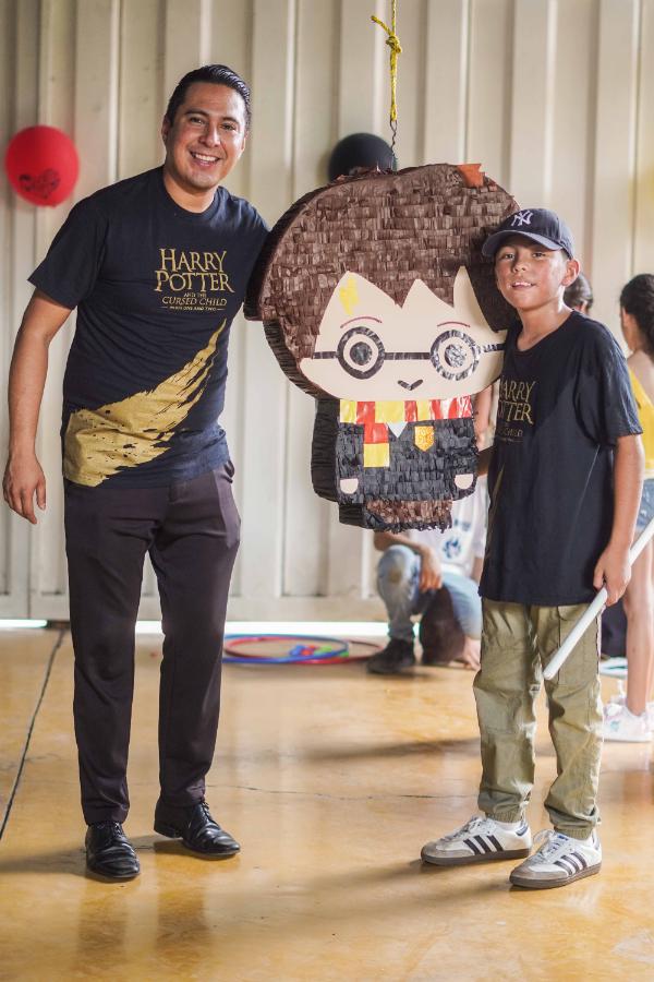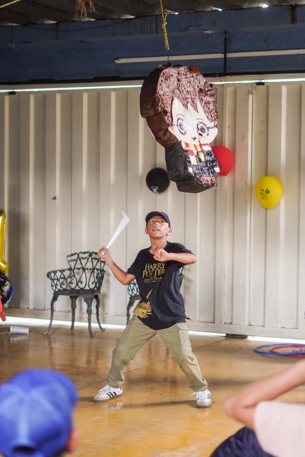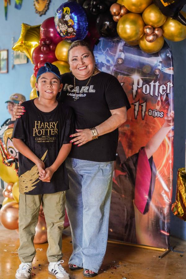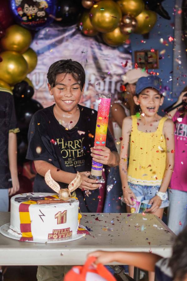 El festejo tuvo como temática principal la saga de Harry Potter, de la cual es gran admirador, y estuvo adornado con elementos característicos del famoso mago. Durante la celebración, los invitados disfrutaron de concursos, juegos y la tradicional piñata, también inspirada en la historia fantástica, que hizo reír y entretener a todos mientras recolectaban dulces y sorpresas.