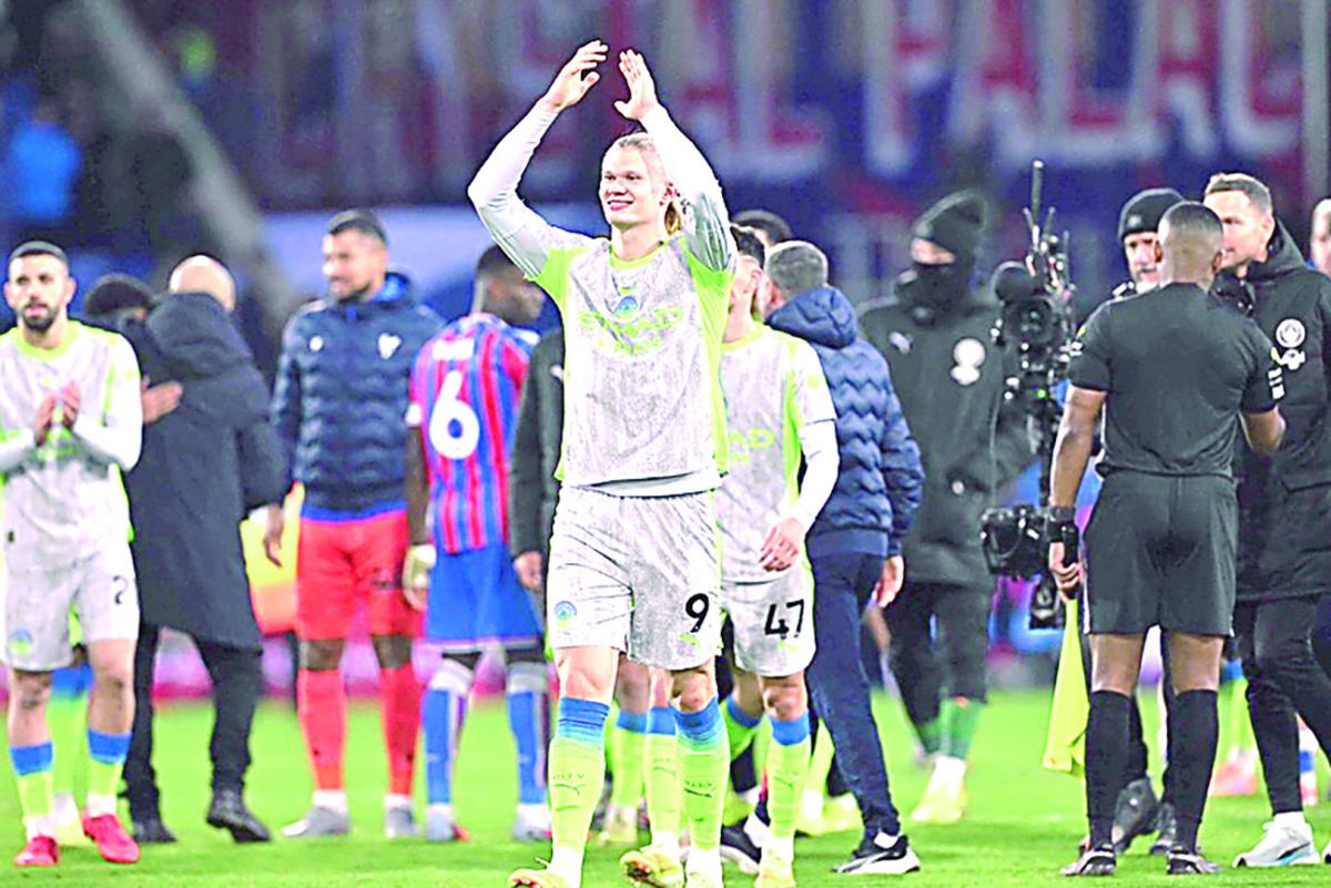 Haaland (41′, 88′ de penal) y el atacante inglés Phil Foden (69′), ambos en gran estado de forma, anotaron las dianas para conquistar Selhurst Park, feudo de los Eagles (5º, 26 puntos).