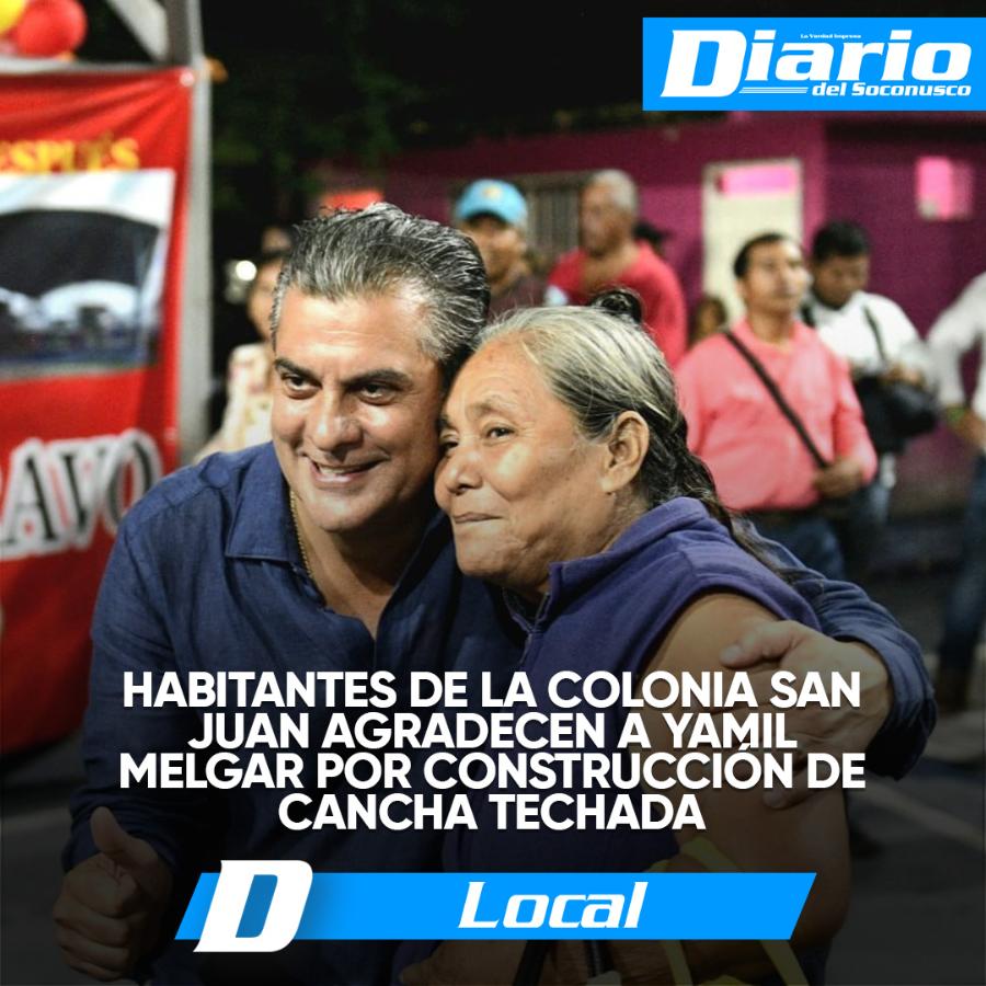 Habitantes de la colonia San Juan agradecen a Yamil Melgar por construcción de cancha techada