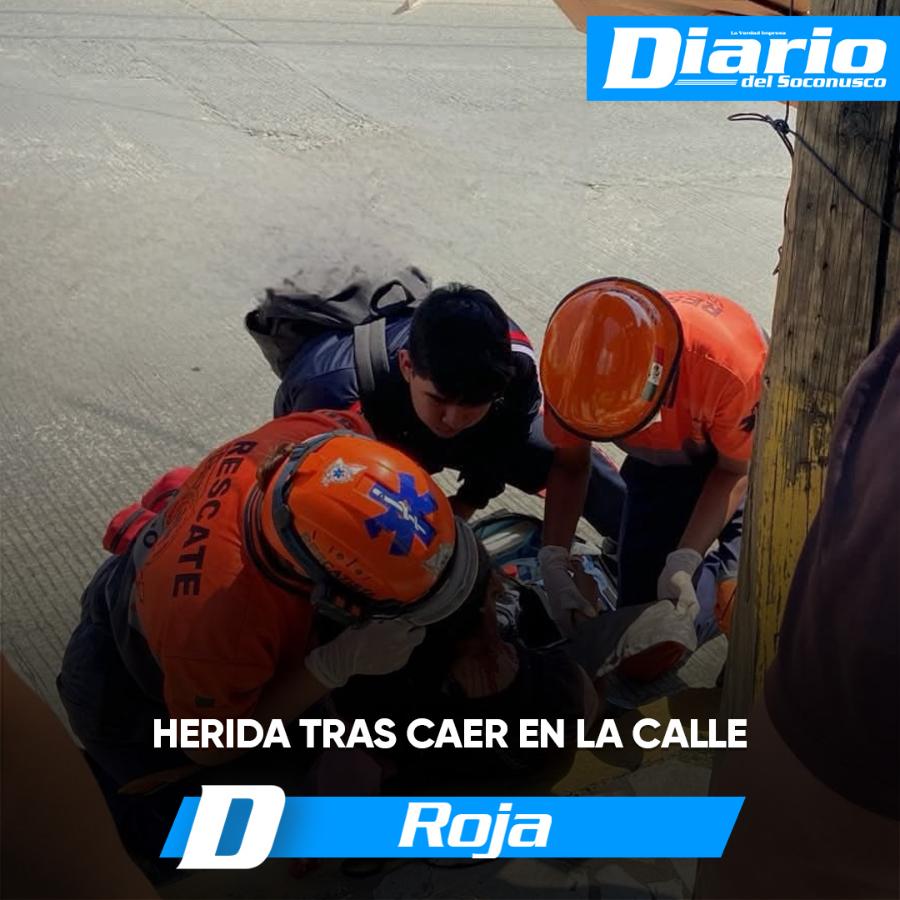 De acuerdo con la información recabada, la mujer caminaba sobre la banqueta cuando, al dar un mal paso y sin percatarse, perdió el equilibrio y cayó al suelo, provocándose la lesión.