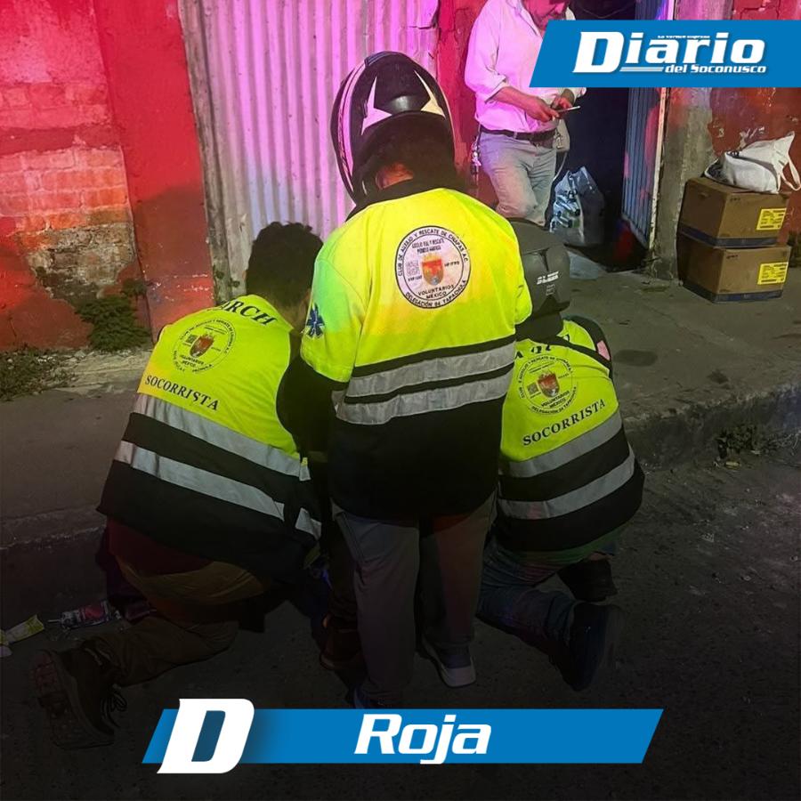 Minutos más tarde arribaron paramédicos de CARCH 04 Tapachula, quienes brindaron atención y valoración prehospitalaria a un hombre identificado como Cleofate “N”, de 47 años de edad, quien presentaba laceraciones producidas por arma blanca, destacando una herida de aproximadamente 10 centímetros en la región occipital y otra de 5 centímetros en el pómulo derecho.