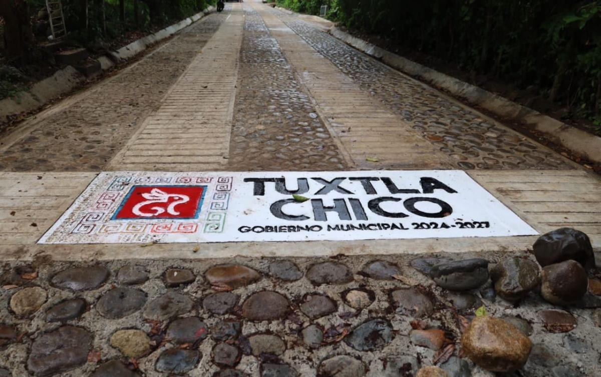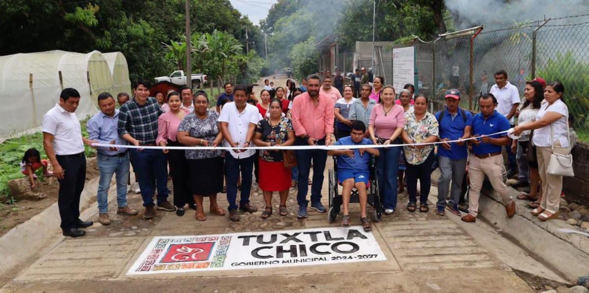 Inauguran camino con empedrado mixto en la Primera Sección de Medio Monte, Huixtla