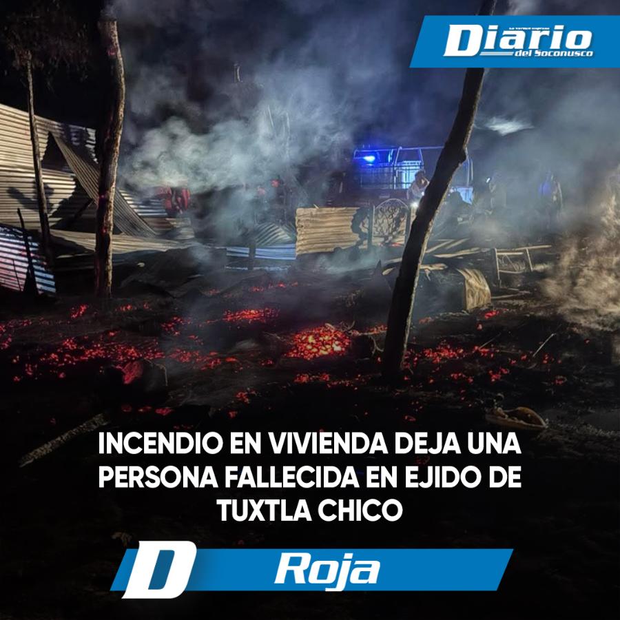 Una persona perdió la vida durante un incendio registrado la madrugada de este lunes en una vivienda ubicada en el ejido Las Pilas, en el municipio de Tuxtla Chico.