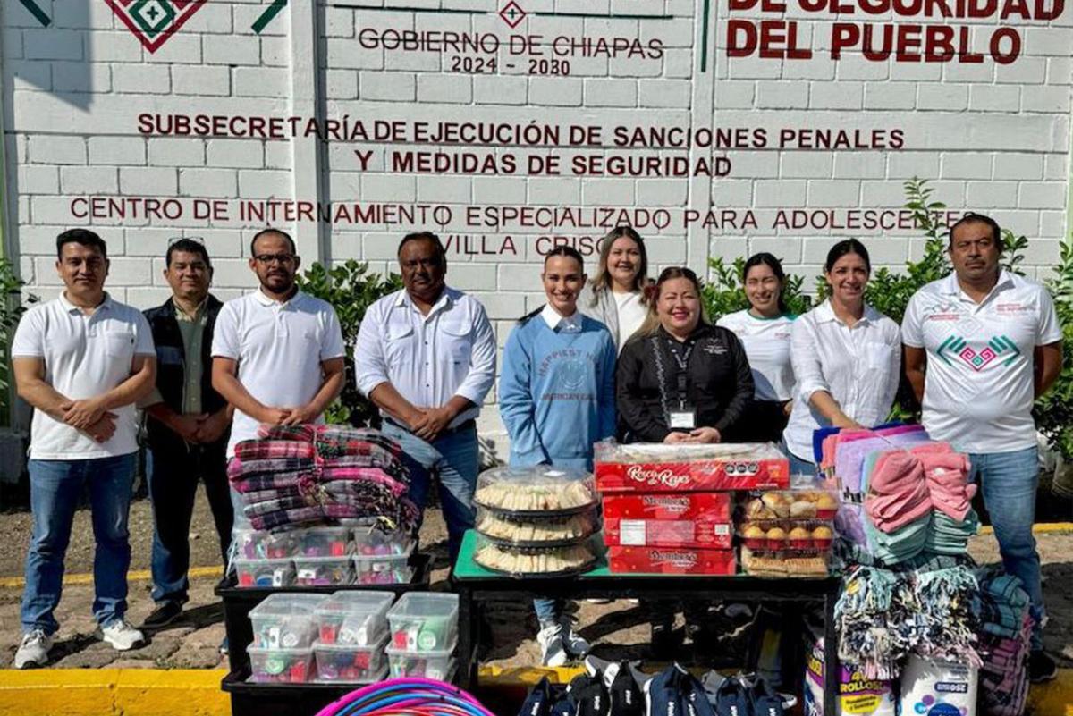El Instituto del Deporte del Estado de Chiapas, encabezado por su titular Bárbara Altúzar Galindo, hizo entrega de material deportivo e higiene personal a jóvenes del Centro de Internamiento Especializado para Adolescentes “Villa Crisol”, perteneciente a la Secretaría de Seguridad del Pueblo, en el municipio de Berriozábal, en el marco de la celebración tradicional del “Día de Reyes”.