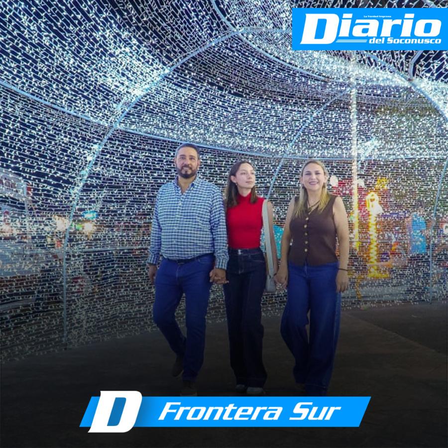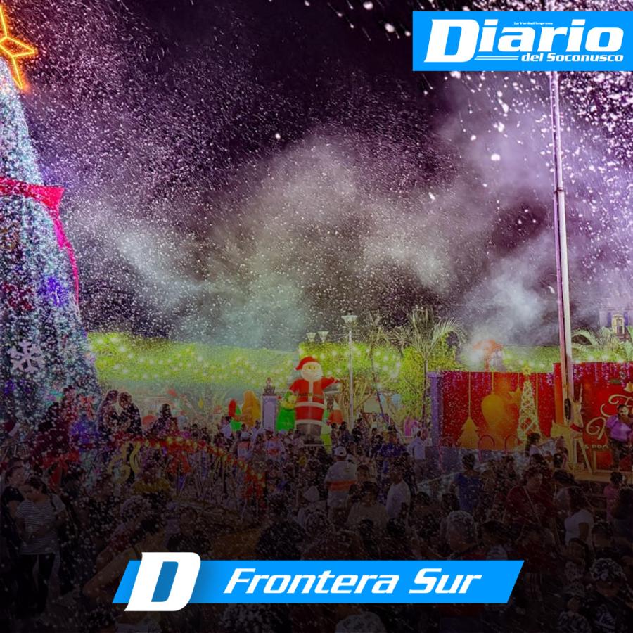 Como cada año, Tuxtla Chico sorprendió a quienes se dieron cita en el parque central Miguel Hidalgo, con juegos de luces láser y una nevada que logró llenar de espíritu navideño los corazones de familias completas.