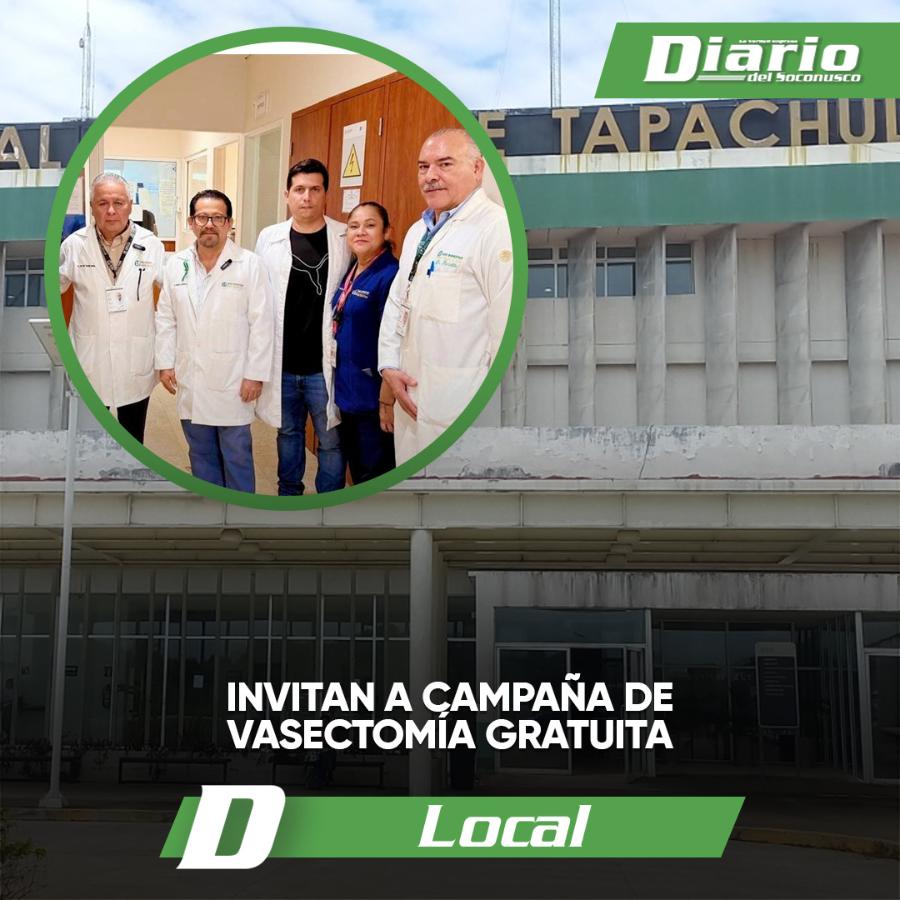 El Hospital General IMSS Bienestar de Tapachula invitó a los hombres de la región a ejercer una sexualidad responsable, y participar en la última Campaña de Vasectomía sin Bisturí gratuita, que se realizará durante 19, 20 y 21 de noviembre, en las instalaciones de dicha institución médica, a partir de las 7:30 horas.