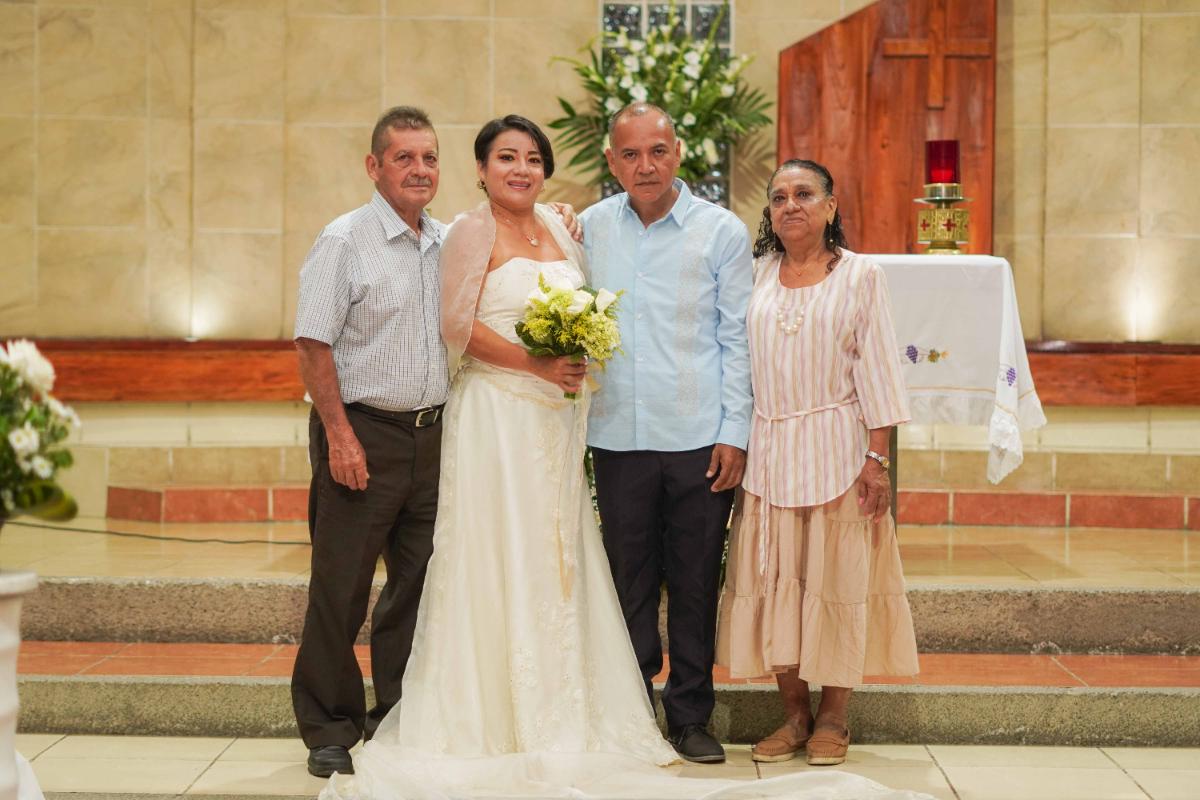 Durante la misa, los ahora esposos recibieron la bendición nupcial y las felicitaciones de sus seres queridos, quienes fueron testigos del amor y compromiso que los une.