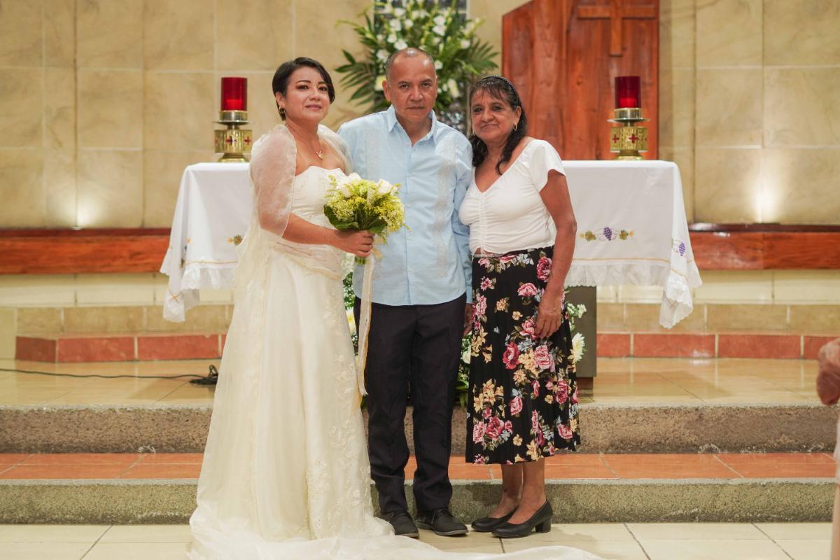 Tapachula, Chiapas.- Rodeados del cariño de familiares y amigos, Irasema y Juan unieron sus vidas ante el altar en una emotiva ceremonia religiosa celebrada en la Iglesia San Francisco de Asís de esta ciudad.