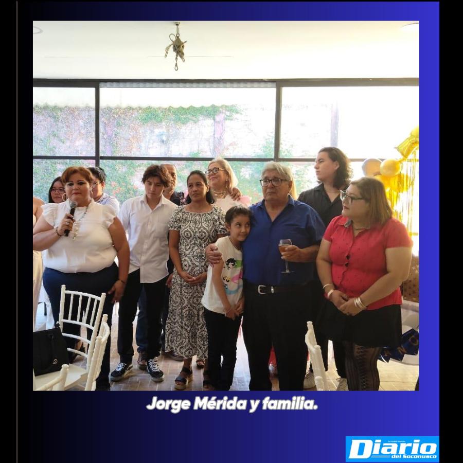 En un reconocido salón de eventos al sur de Tapachula, familiares y amigos se reunieron para celebrar los 75 años de vida de Jorge Mérida Mejía, en una emotiva convivencia organizada por sus hijas, María José Mérida, Natalia Mérida y Yazmín Mérida.