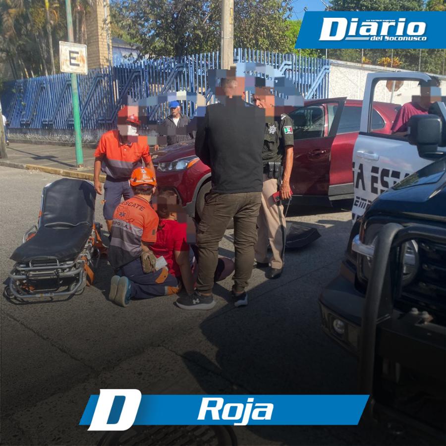 Una persona resultó lesionada luego de ser atropellada por un vehículo la mañana de este martes, en el cruce de la 19ª Calle Poniente y 4ª Avenida Norte de Tapachula.