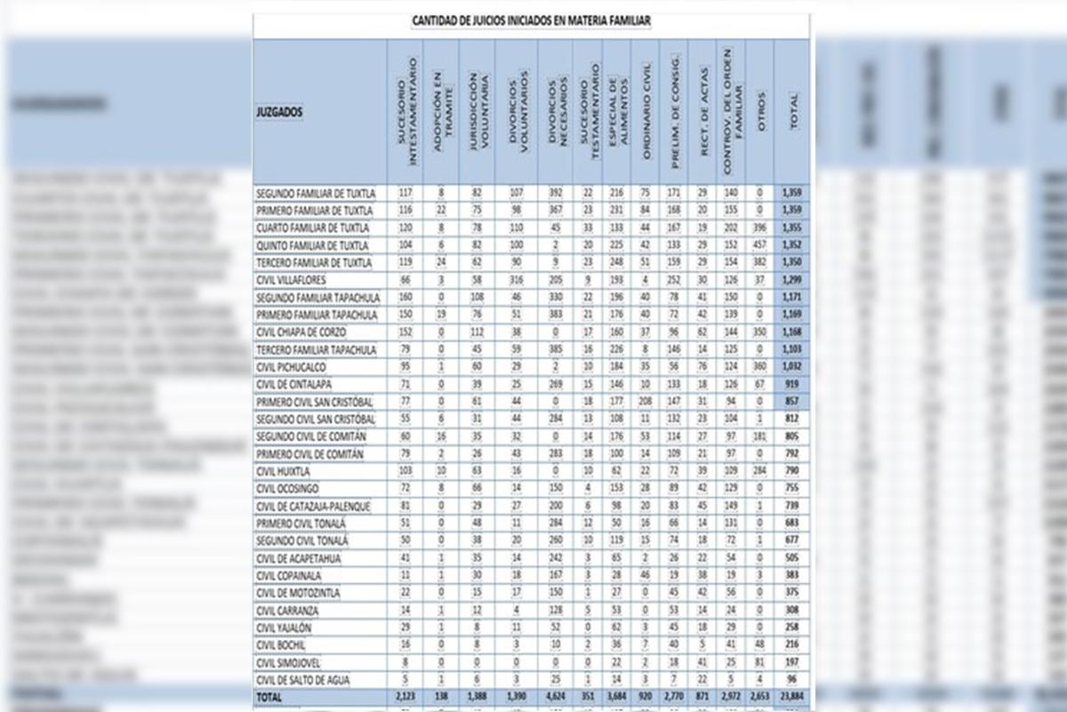 AQUÍ LES DEJO DOS TABLAS QUE LES PERMITARA OBSERVAR LOS JUICIOS CIVILES Y FAMILIARES EN CHIAPAS A PARTIR DE LAS ESTADISTICAS JUDICIALES DEL TSJE