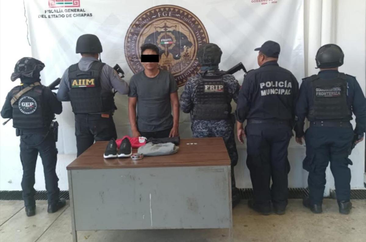 La Secretaría de Seguridad del Pueblo (SSP) a través de la Fuerza de Reacción Inmediata Pakal (FRIP), Guardia Estatal Preventiva y Guardia Estatal Fronteriza, en coordinación con la Agencia de Investigación e Inteligencia Ministerial (AIIM) de la Fiscalía General del Estado (FGE) y Policía Municipal, detuvieron a presunto responsable de los delitos de robo y contra la salud, en el municipio de Tapachula.