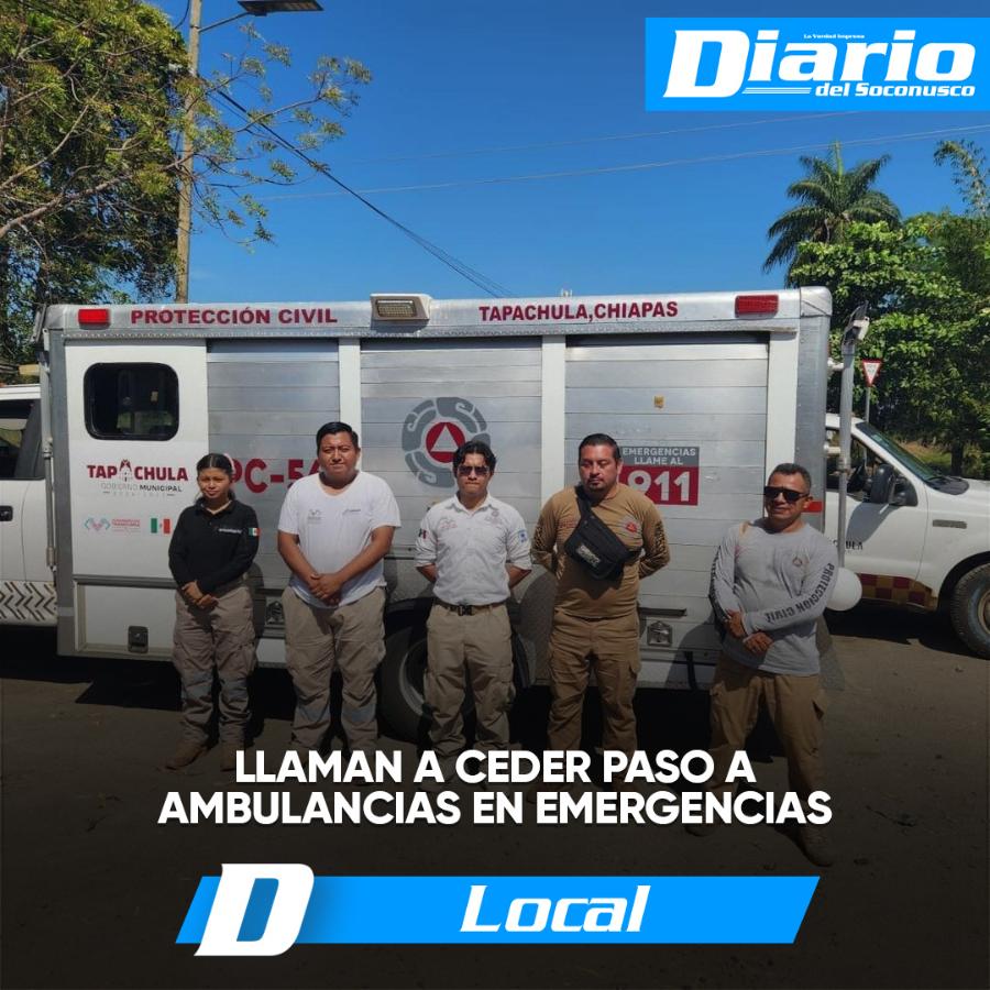 El gobierno de Tapachula, a través de la Secretaría de Protección Civil Municipal, hizo un llamado a los conductores en esta temporada decembrina a ceder el paso, disminuir la velocidad y permitir que las ambulancias y cuerpos de auxilio lleguen a tiempo.