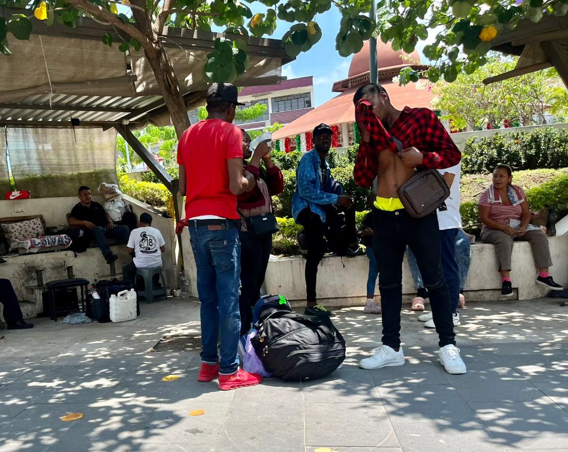 En el parque central, grupos de hasta seis personas se observan en búsqueda de algún alojamiento en sus primeras horas de arribo a la localidad. Principalmente, son haitianos y cubanos quienes han comenzado a llegar provenientes de la frontera con Guatemala, en su afán por avanzar por territorio mexicano ante la noticia que los procedimientos en la Comisión Mexicana de Ayuda a Refugiados (Comar) son sumamente tardados.