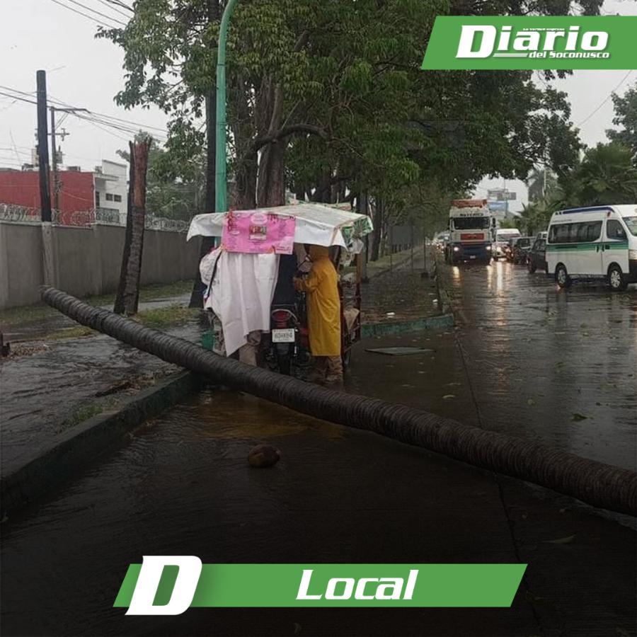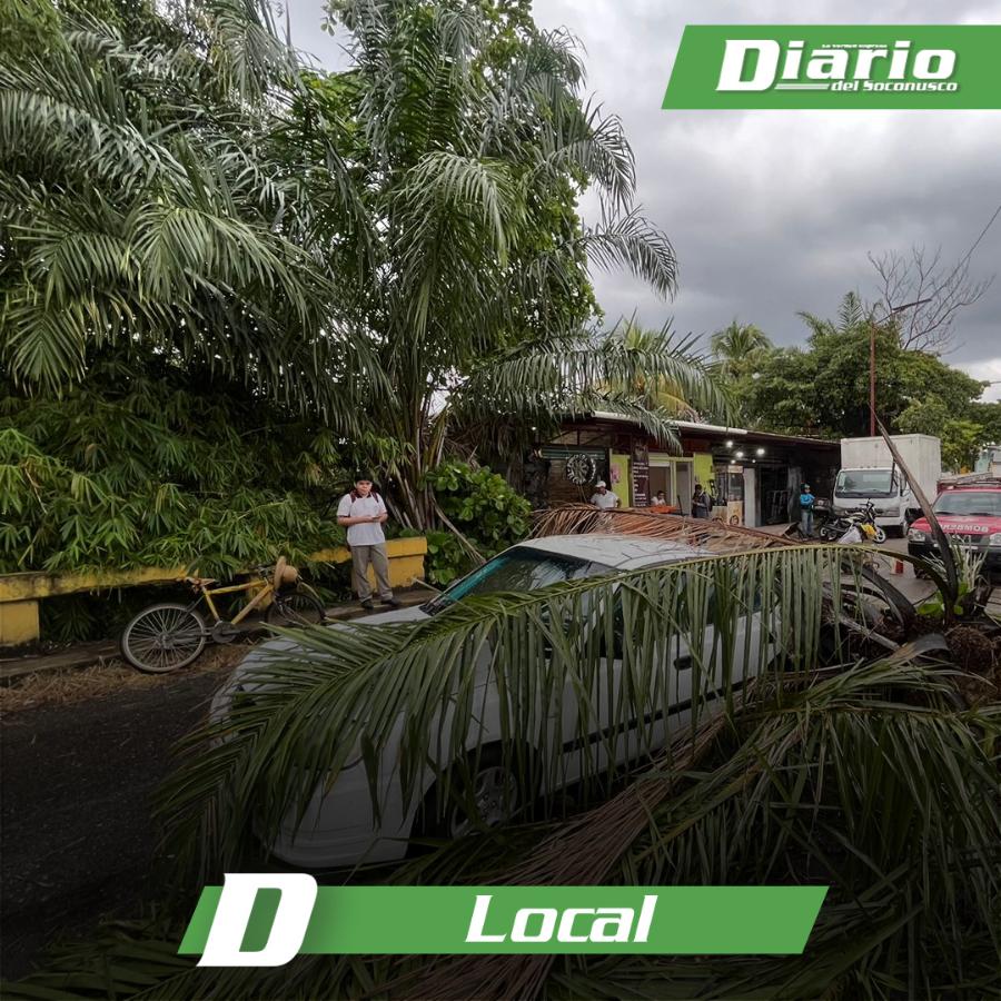 La intensa lluvia y los fuertes vientos registrados la tarde de este martes en Tapachula, provocaron la caída de una palmera sobre un automóvil particular, causando daños materiales y una persona con crisis nerviosa.