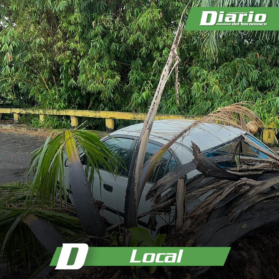 El incidente ocurrió sobre el bulevar de la 18ª Calle Oriente y 19ª Avenida Sur, a la altura del puente Texcuyuapan, donde una palmera cayó sobre un vehículo Hyundai Verna, de color blanco, afectando principalmente la parte trasera del automóvil.