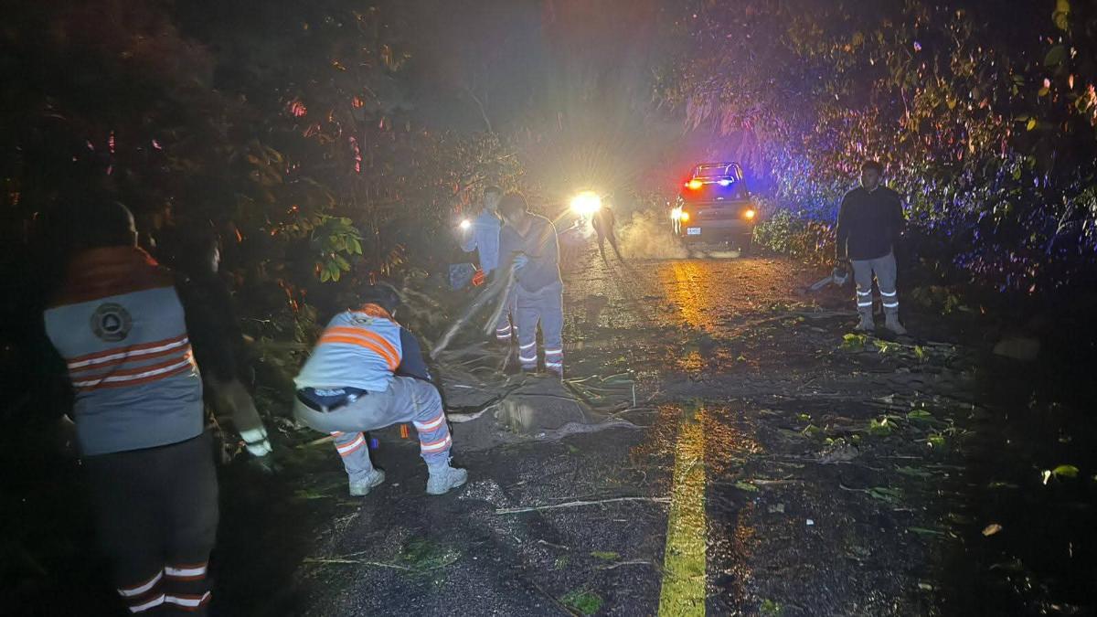 Las intensas lluvias registradas durante últimas horas en la región, provocaron la caída de árboles, ramas y cableado sobre el tramo carretero Nueva Esperanza–Santo Domingo, generando la obstrucción parcial del paso vehicular.