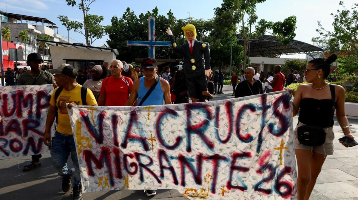 Osmay García, uno de los tantos isleños deportados, avanzó con la cruz y señaló que vivió 33 años en Estados Unidos, lo que calificó como una injusticia porque acabó con su vida y la de tantos connacionales que permanecen en este punto de México.