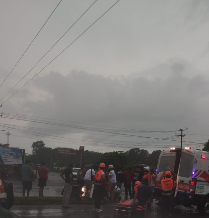 Motocicleta embestida y choque posterior entre vehículos en Tapachula; atendieron a los lesionados